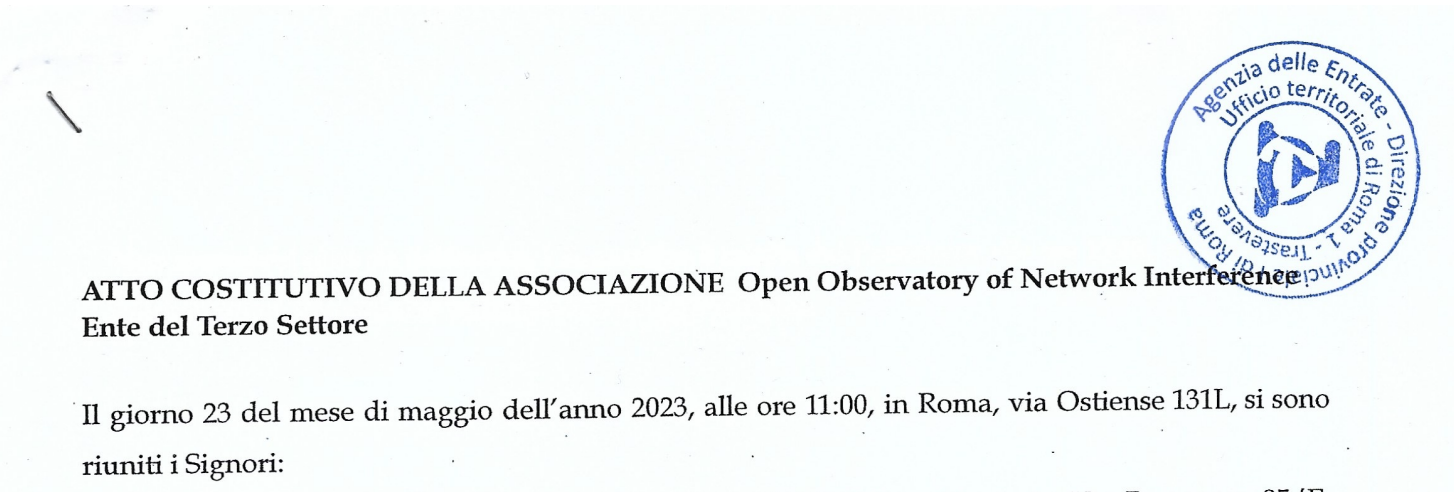 OONI is now a registered NGO in Italy!