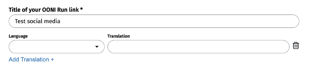 Step 5. Add a title for your OONI Run link. Optionally, you can add translations for your title.