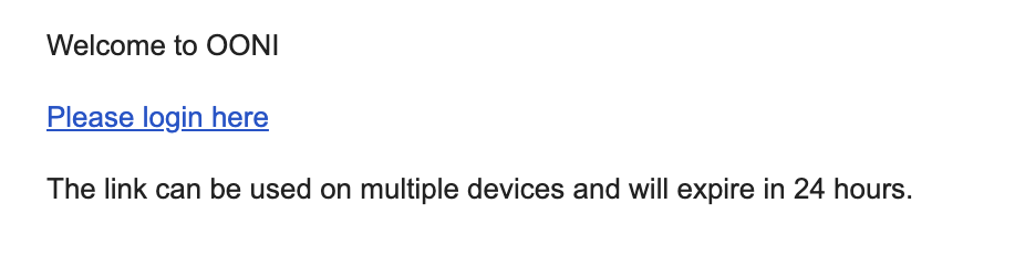 Step 4. Click the link (“Please login here”) sent to your email to log into the OONI Run v2 platform.