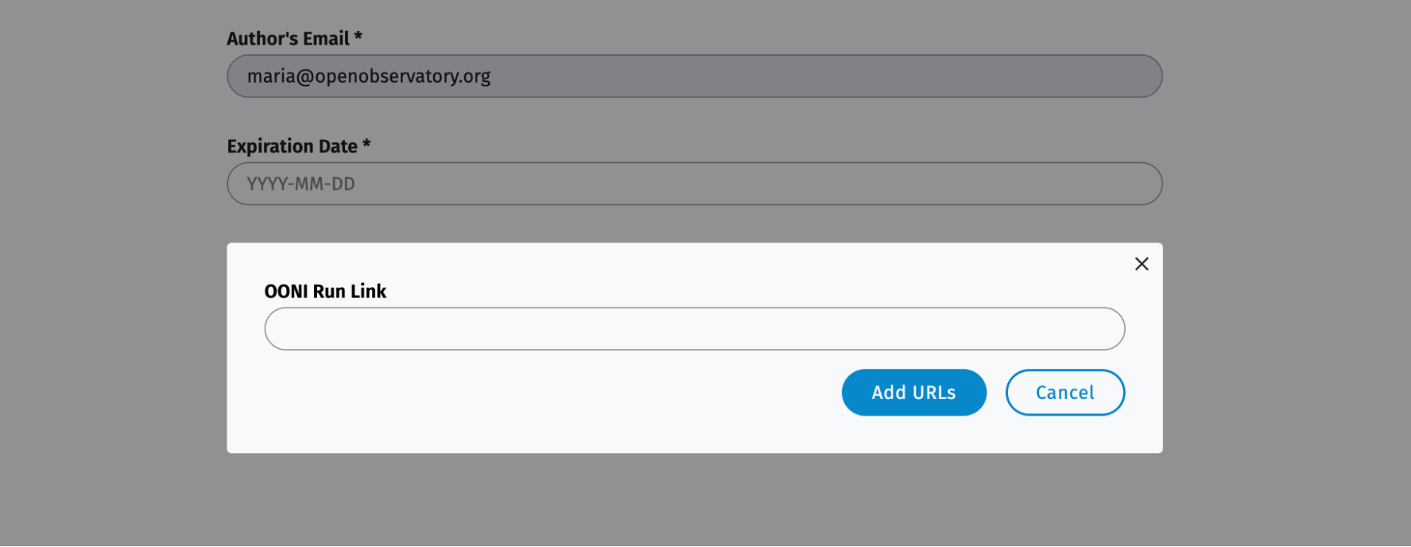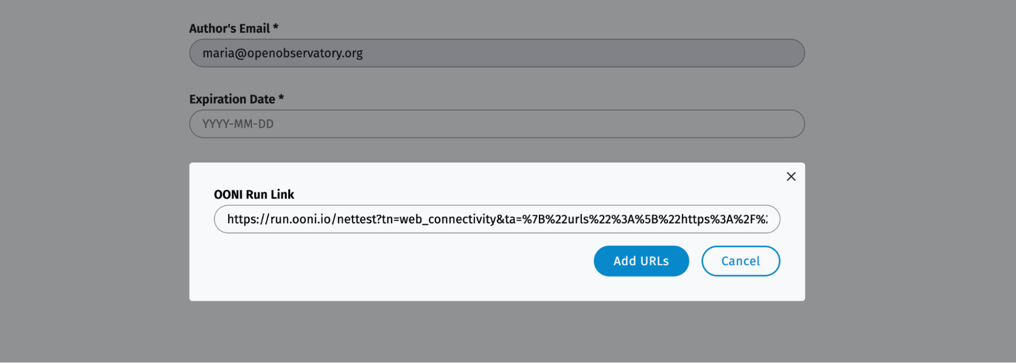 Note: Determine the expiration date based on how long you would like OONI Probe users to have the ability to run your OONI Run link.
